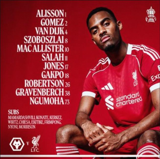 利物浦客戰狼隊:薩拉赫搭檔加克波,索博、麥卡利斯特出戰