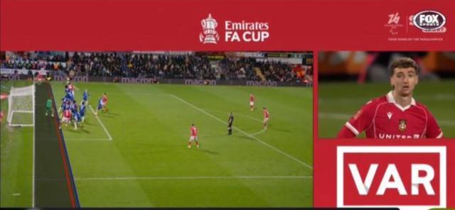 第114分鐘,雷克瑟姆曾利用角球機會打進一球,但VAR介入后認定主隊球員頭球擺渡時,進球者布倫特已經越位。進球無效。